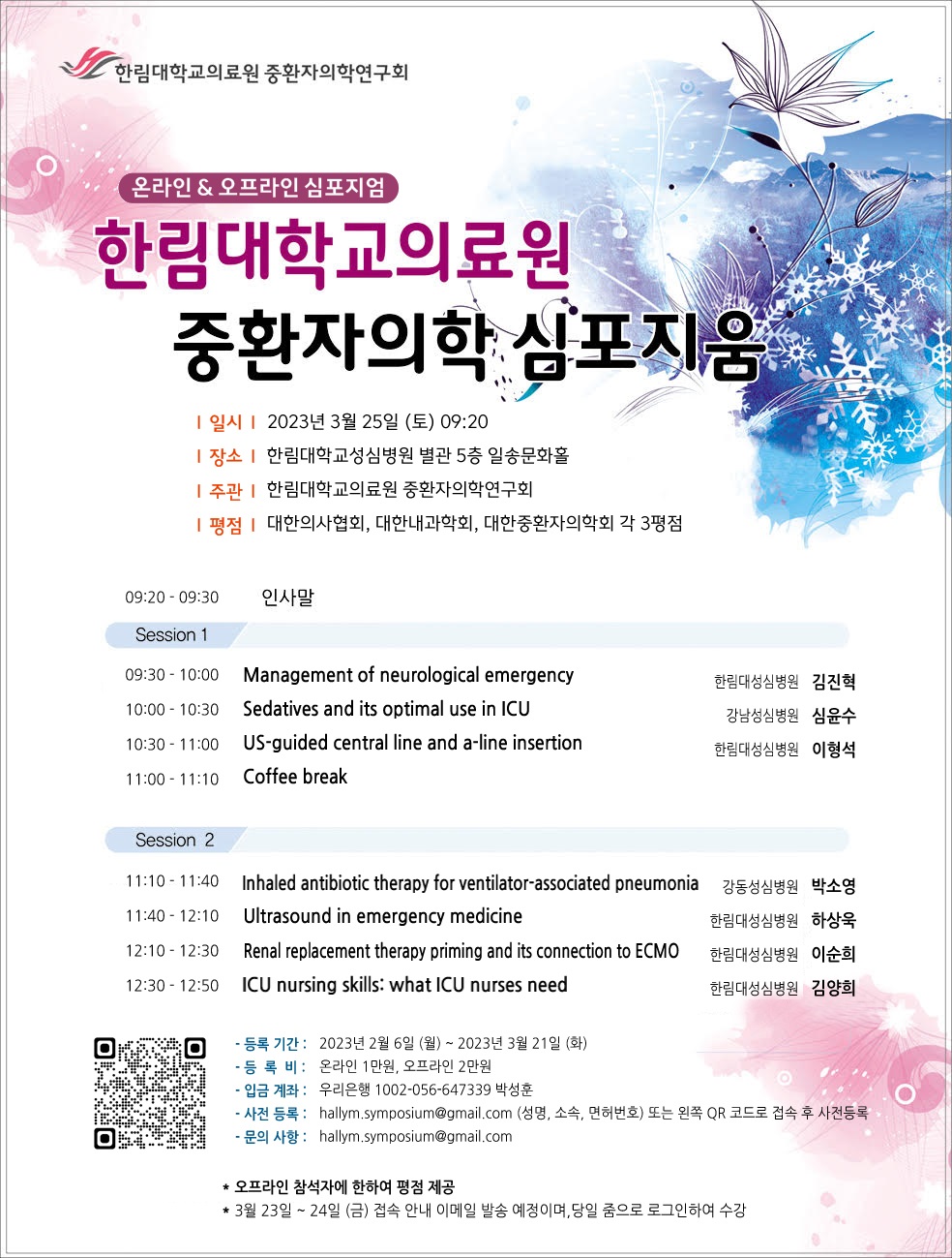 À̹ø ½ÉÆ÷Áö¾öÀº ¿ÀÇÁ¶óÀΰú ¿Â¶óÀÎ ¸ðµÎ Âü¿© °¡´ÉÇÏ´Ù. 3¿ù 21ÀϱîÁö »çÀü µî·ÏÀÚ¿¡ ÇÑÇÏ¿© À̸ÞÀÏ·Î Á¢¼Ó ¾È³»ÇÏ¸ç ´çÀÏ ÁÜ(ZOOM)À» ÅëÇØ ¼ö°­ÇÒ ¼ö ÀÖ´Ù. ¹®ÀÇ´Â ÇѸ²´ë¼º½Éº´¿ø ³»°ú ÇàÁ¤½Ç·Î ÇÏ¸é µÈ´Ù. ÀüÈ­ 031-380-3976. [³¡]