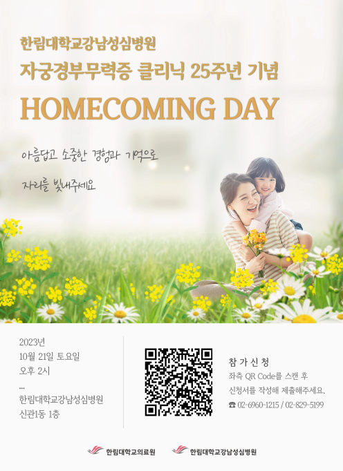 À̹ø Çà»ç´Â ÇѸ²´ë°­³²¼º½Éº´¿øÀÇ ÀڱðæºÎ¹«·ÂÁõ Ŭ¸®´Ð¿¡¼­ Ä¡·á¹ÞÀº »ê¸ð¿Í ±× °¡Á·À̶ó¸é ´©±¸³ª Âü¿©ÇÒ ¼ö ÀÖ´Ù. À̿ܿ¡µµ ÀڱðæºÎ¹«·ÂÁõ ȯÀÚÀ̰ųª Ãâ»êÀ» ¾ÕµÐ ÀÓ»êºÎ, ȤÀº ±× °¡Á·À̶ó¸é Âü¿©ÇÒ ¼ö ÀÖ´Ù. Âü¿© ½ÅûÀº ¿À´Â 15ÀϱîÁö Æ÷½ºÅÍÀÇ QRÄÚµå¿Í ±¸±ÛÆû(https://forms.gle/KT5JUm1x9cLm8N1M8)À» ÅëÇØ °¡´ÉÇÏ´Ù. ¹®ÀÇ: 02-6960-1215/02-829-5199[³¡]