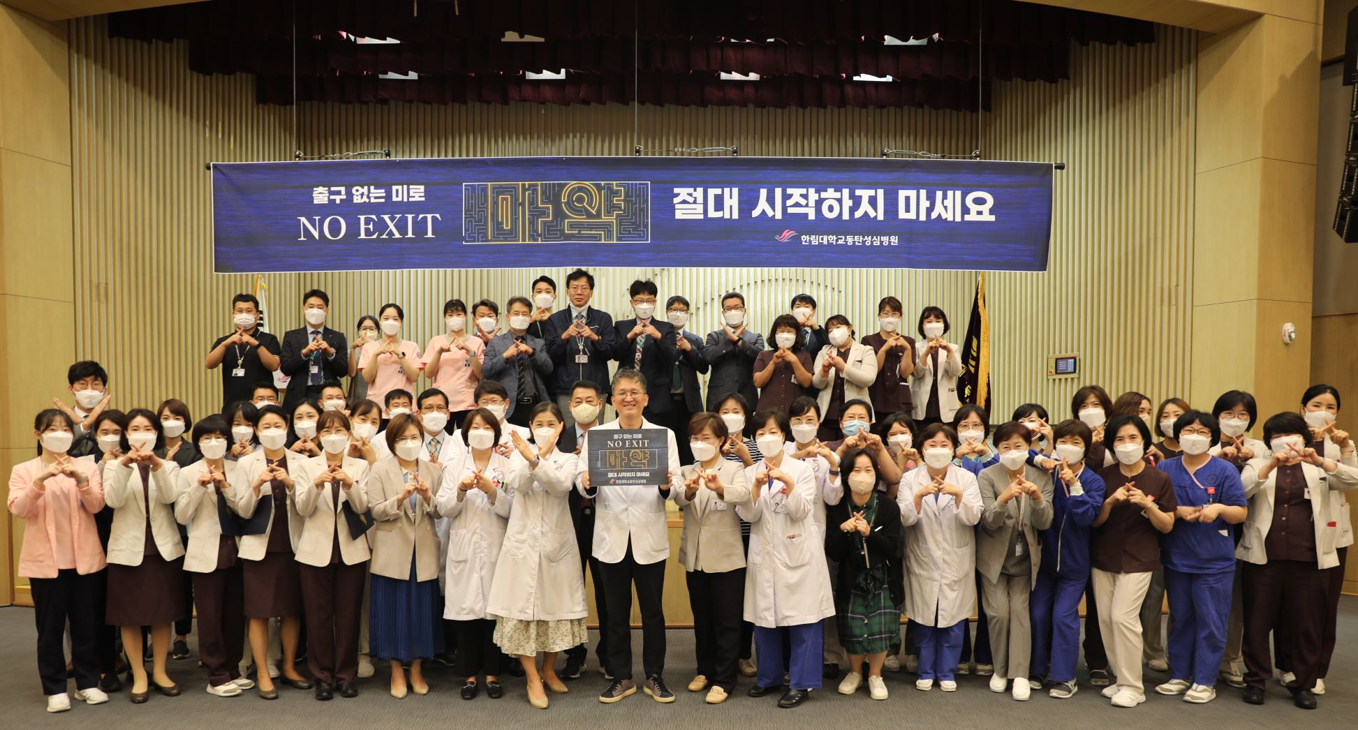 ÇѸ²´ëÇб³µ¿Åº¼º½Éº´¿ø(º´¿øÀå ³ë±Ôö)ÀÌ 2ÀÏ µ¿³²º¸°Ç´ëÇÐ ±èÁ¾¿Ï ÃÑÀåÀÇ Áö¸ñÀ¸·Î ¸¶¾àÁßµ¶ÀÇ À§Ç輺À» ȯ±âÇÏ°í °æ°¢½ÉÀ» °íÃëÇÏ´Â ¡®NO EXIT¡¯ Ä·ÆäÀο¡ µ¿ÂüÇß´Ù.