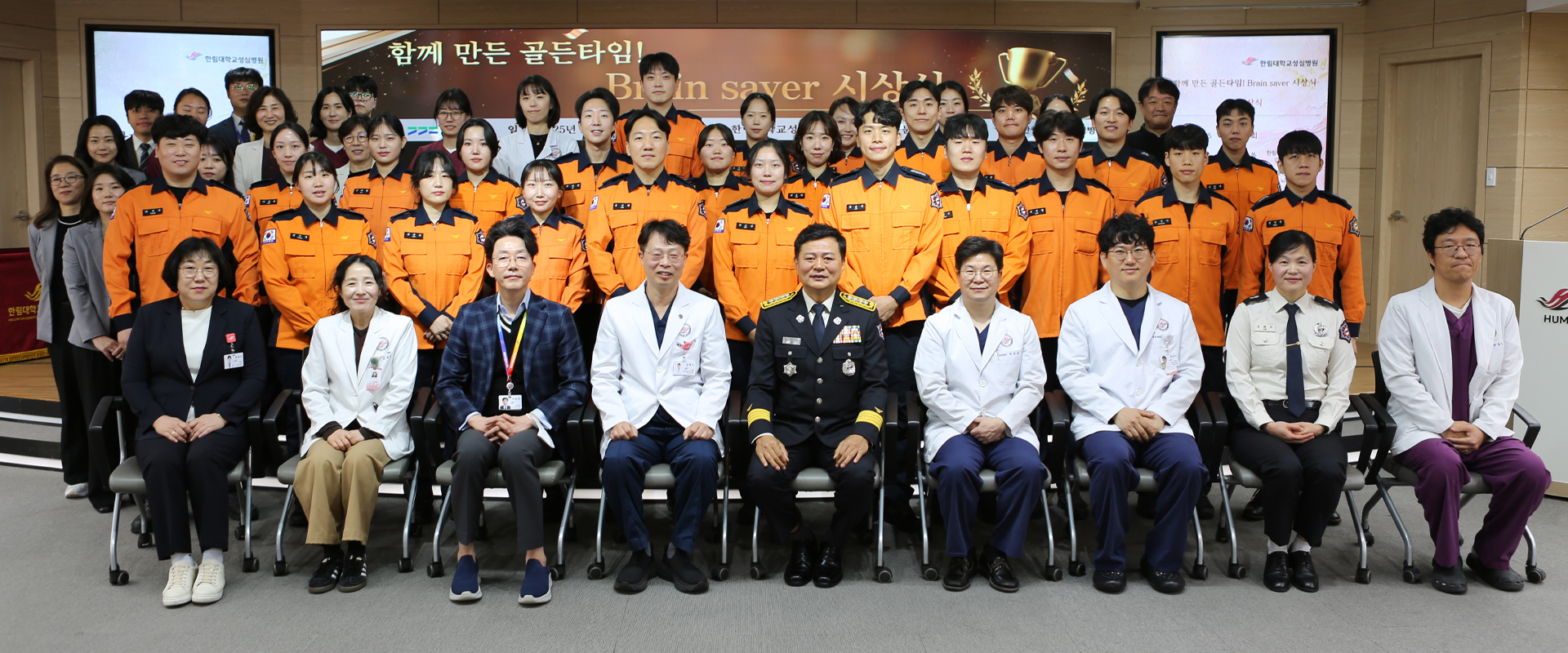 <»çÁø ¼³¸í : ÇѸ²´ëÇб³¼º½Éº´¿øÀÌ ¡®ÇÔ²² ¸¸µç °ñµçŸÀÓ! ºê·¹ÀÎ ¼¼À̹ö(Brain Saver) ½Ã»ó½Ä¡¯À» ¿­°í ³úÁ¹Áß Á¶±â ´ëÀÀ¿¡ ±â¿©ÇÑ ±¸±Þ´ë¿ø°ú ÀÇ·áÁøÀÌ ÇÔ²² ´Üü»çÁøÀ» ÃÔ¿µÇϰí ÀÖ´Ù.>