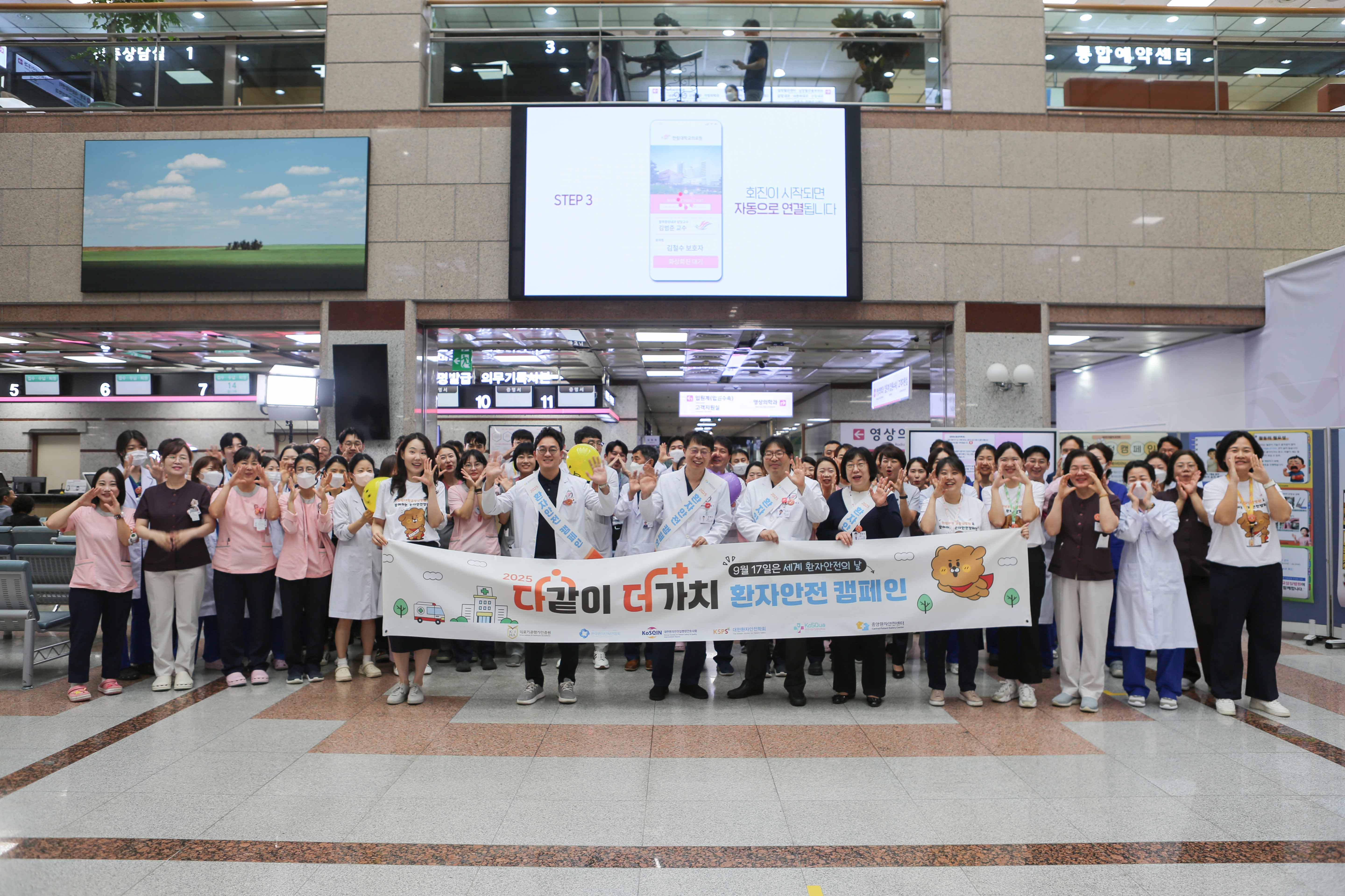 <»çÁø ¼³¸í : ÇѸ²´ëÇб³¼º½Éº´¿ø ±³Á÷¿ø°ú ȯÀÚ¾ÈÀüÁöÅ´À̵éÀÌ º»°ü ·Îºñ¿¡¼­ ¡¸2025 ´Ù°°ÀÌ ´õ°¡Ä¡ ȯÀÚ¾ÈÀü Ä·ÆäÀΡ¹¿¡ Âü¿©ÇØ ±â³ä ÃÔ¿µÀ» Çϰí ÀÖ´Ù.>